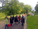 Nous étions 20 randonneurs au départ de Douillet-le-Joly pour parcourir une dizaine de kilomètres sur le GR36A . Sous un ciel menaçant et après quelques averses nous avons traversé la Sarthe grâce au bac à chaînes situé au camping "Le Sans Soucis" à Fresnay-sur-Sarthe .Nous avons poursuivi la marche et rejoint le château par le quartier du Bourgneuf en admirant les demeures joliment décorées.  L'après-midi s'est terminé dans l'enceinte du Parc du château par une dégustation de pâtisseries préparées par Sylvie et Martine et le verre de l'amitié.